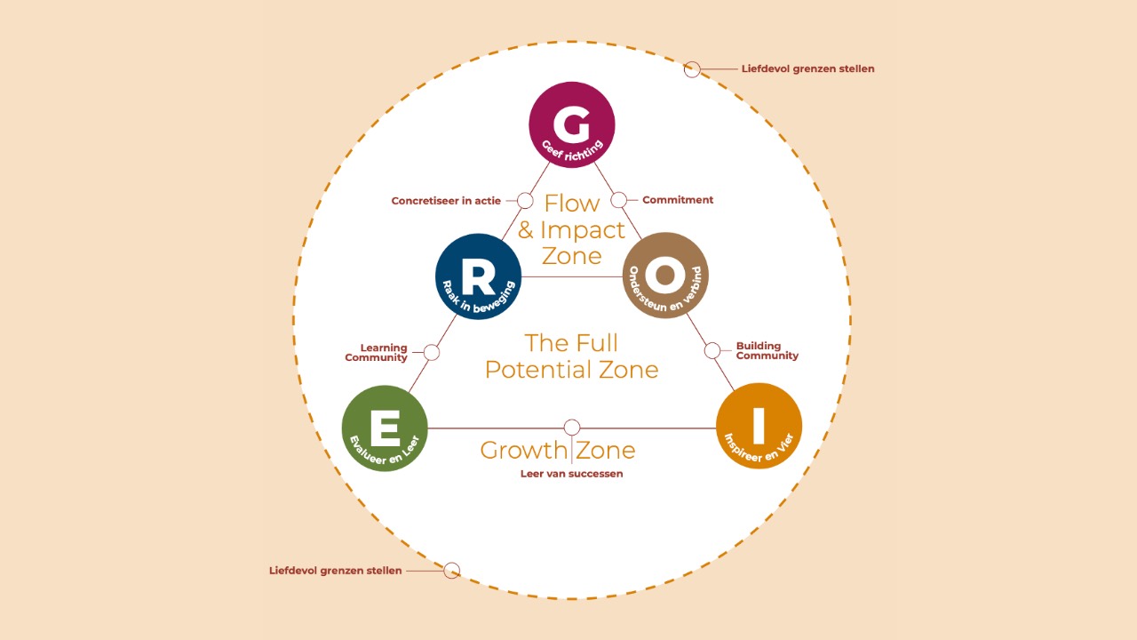 Er zijn van die modellen die je in vijf minuten kunt uitleggen, en die je vervolgens een leven lang blijven uitdagen. Omdat ze zo eenvoudig zijn in vorm, en zo rijk in betekenis. Het GROEI-Framework voor Liefdevol Leiderschap is er zo één.